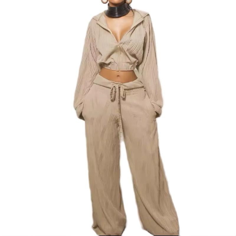Long Sleeve Hoodie and Wide Leg Zipper Set